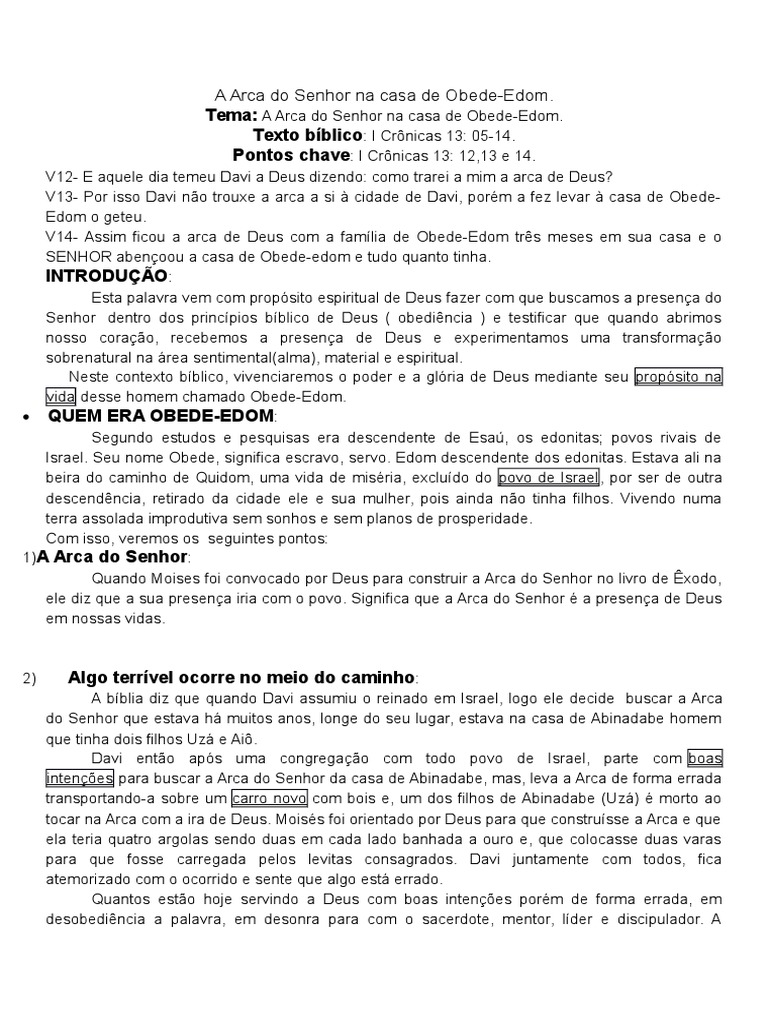 A Arca Do Senhor Na Casa de Obede PDF Arca de Noé Deus