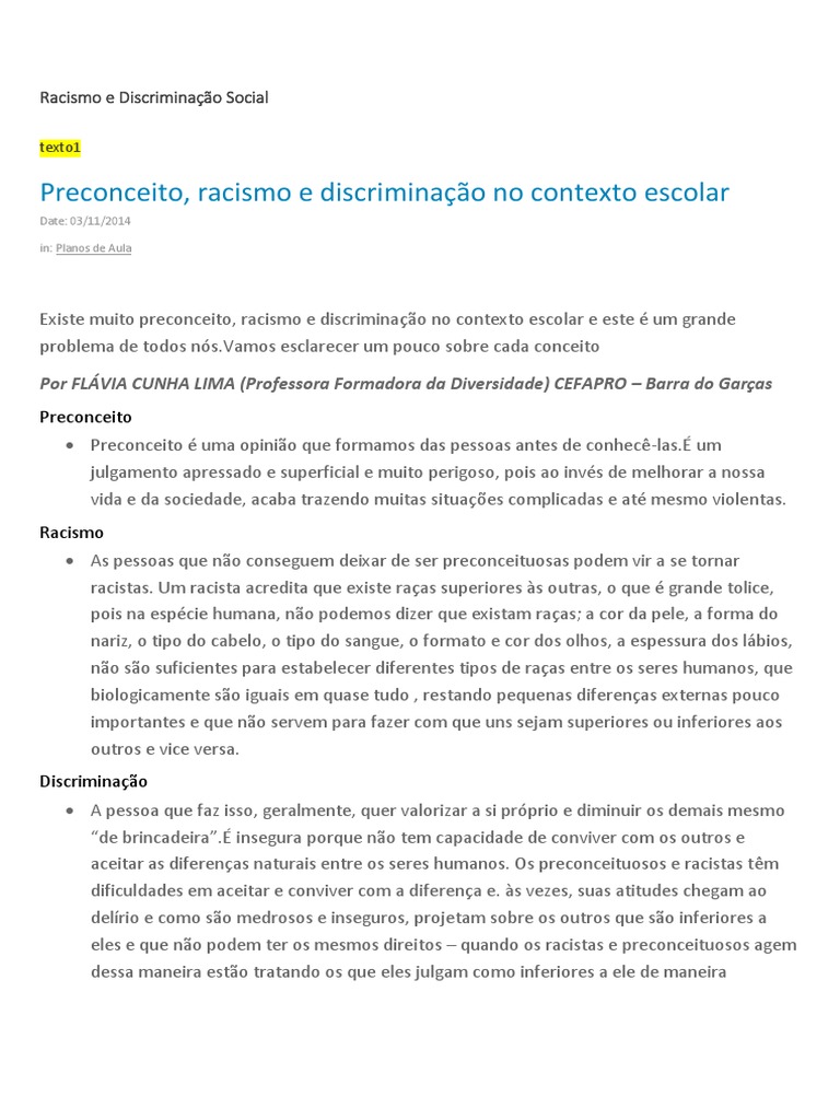 Proposta de Redação Discriminação Social PDF Racismo Discriminação e relações raciais