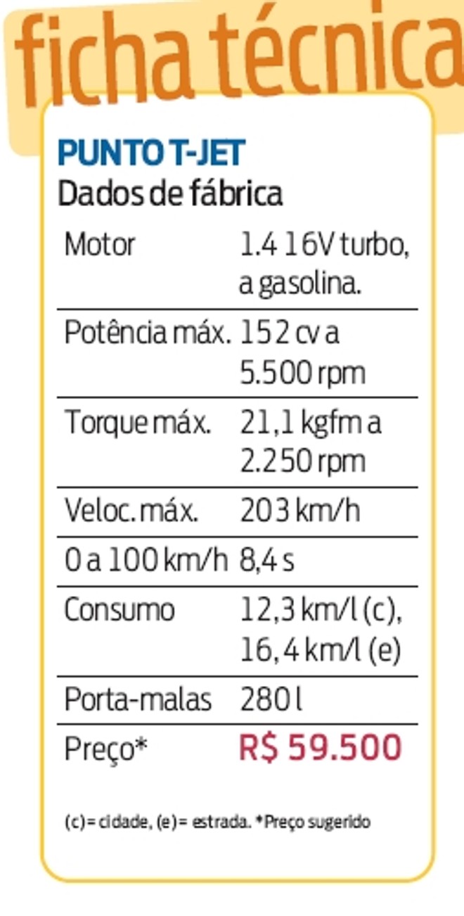 Outras versões. Fiat Punto 2015 T-Jet 1.4 Turbo: Ficha técnica, motor, performance, dimensões, consumo, mecânica e itens de série.