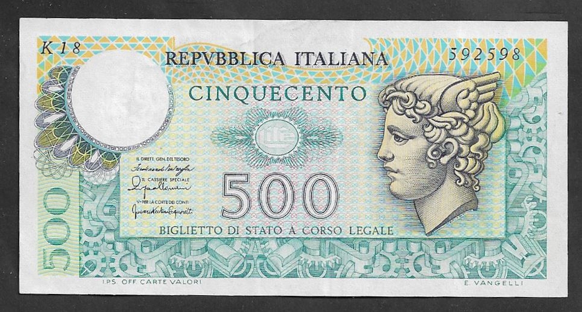 Cédula da Itália no valor de 500 Liras (1976) 114x57m